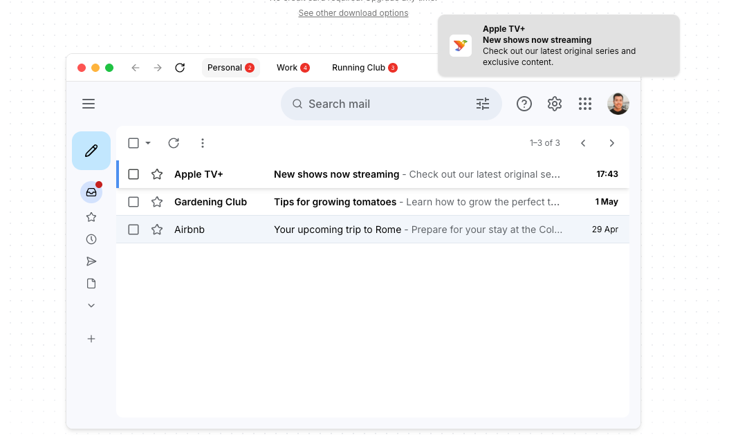 Today, Meru is a beautifully simple macOS app that centralizes all your Gmail accounts in one intuitive interface. No more endless logging in and out or browser tab chaos. Meru provides desktop notifications, unified inbox views, and smart features like phishing protection and tracker blocking, making your Gmail experience safer and more streamlined.
